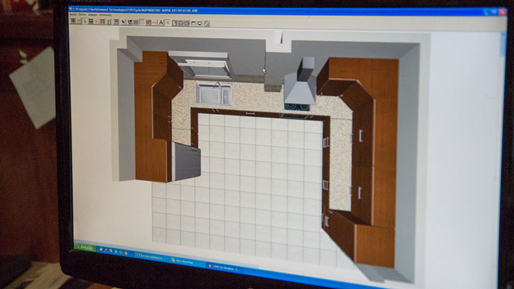 Σχεδιάζουμε σε υπολογιστή την κουζίνα των ονείρων σας, σύμφωνα με τις δικές σας επιλογές και παρεμβάσεις, συνδιαμορφώνοντας το προσχέδιο με ρεαλιστική απεικόνιση,